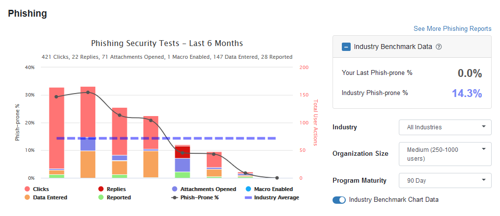 All activity can be followed through an online portal. There is nothing to install or to manage by your IT team. You can generate comprehensive reports including clear graphs and statistics about the impact of the training courses and the results of the campaigns. And at any time, you can evaluate how a user's and company's risk score has changed over time and compare it with the initial score.
